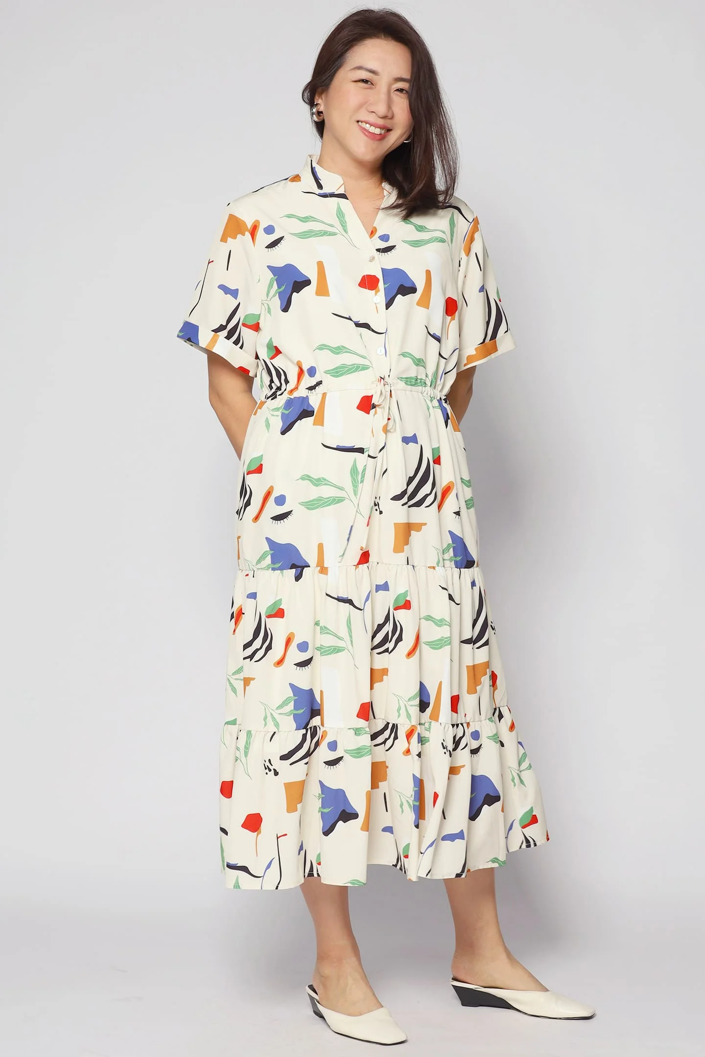 Mandarin collared. button down fastening