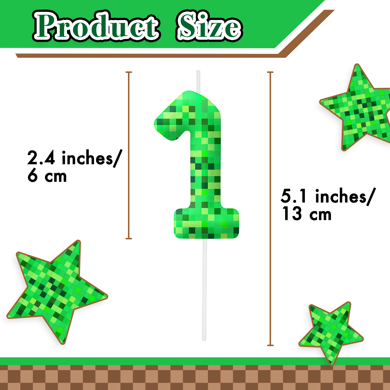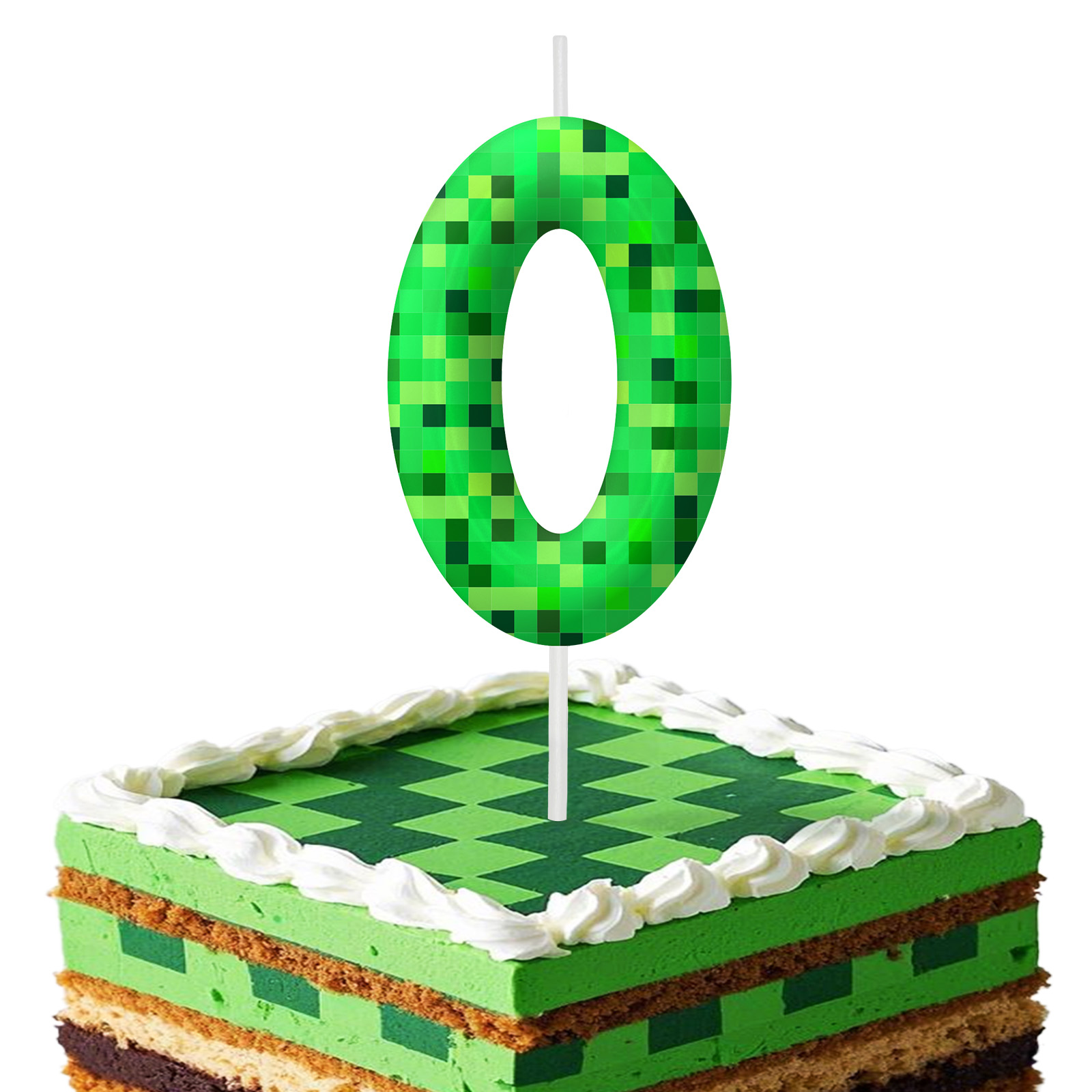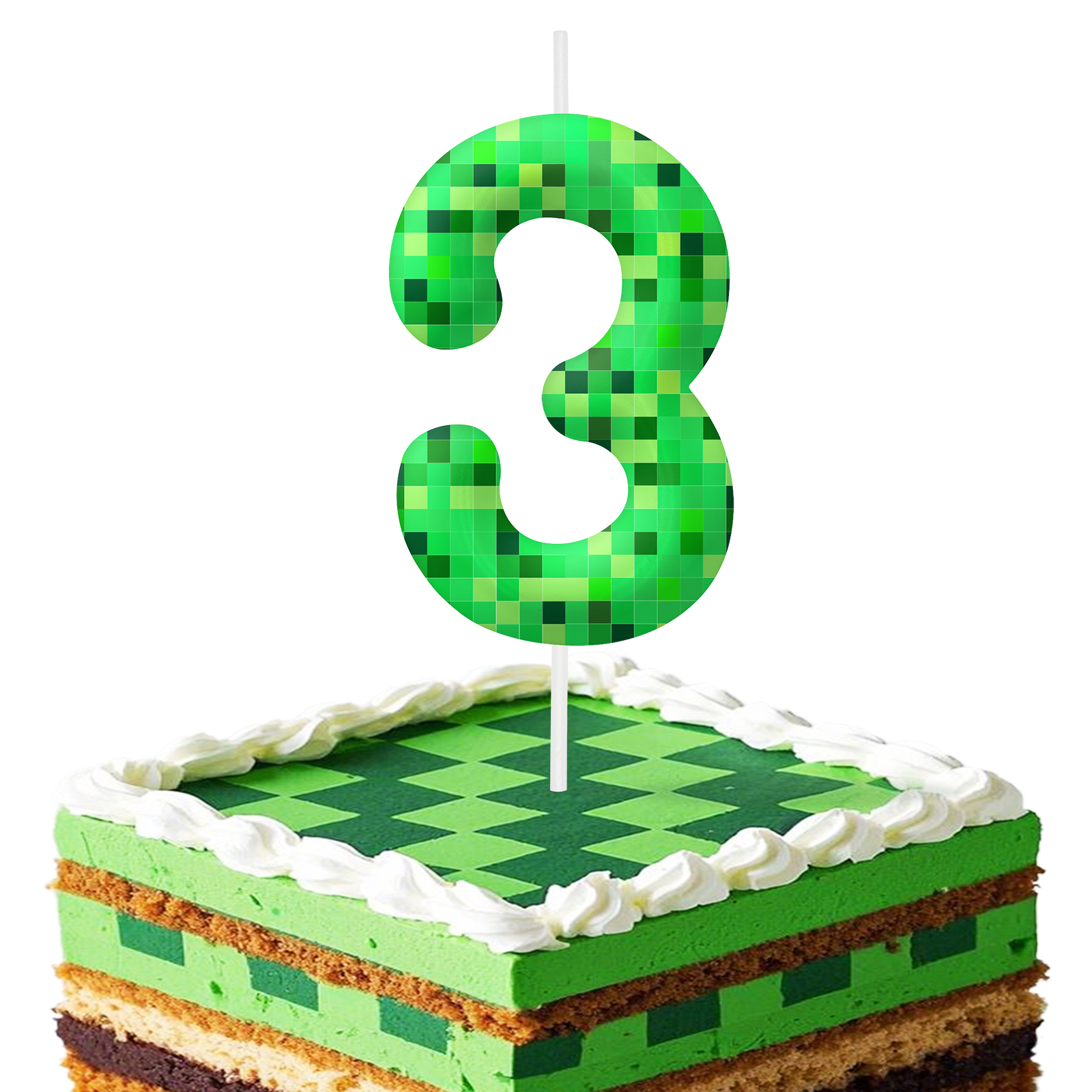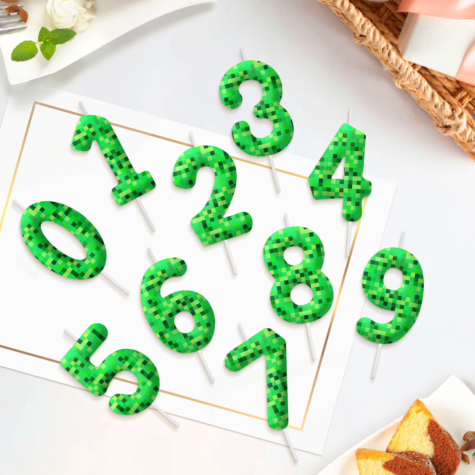 The set features eye-catching pixel-style number candles along with a matching game-themed cake topper, making it perfect for kids’ birthday parties, boys and girls celebrations, and gaming-themed events. The bold green color and block-style design instantly transform your cake into a standout centerpiece full of energy and creativity.